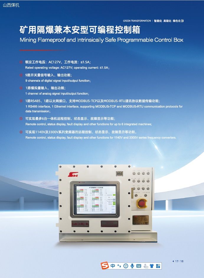礦用隔爆兼本安型可編程控制箱產(chǎn)品介紹